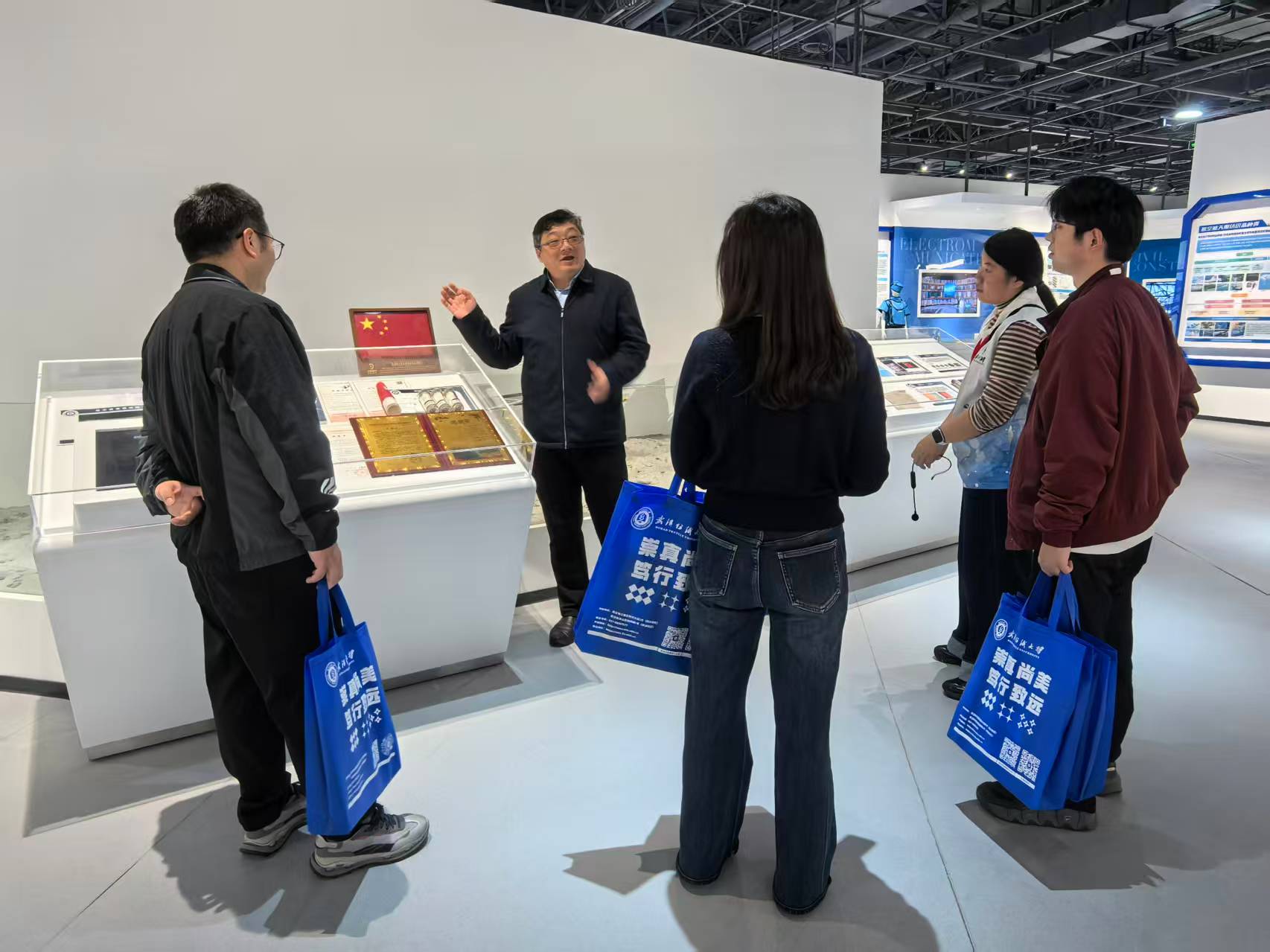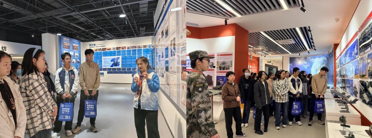 座谈结束后,武汉六中师生先后参观我校纺织科技馆与国防教育馆。在纺织科技馆,师生们循着纺织产业发展脉络,近距离接触纺织展品、先进技术与科研成果,真切感受纺织学科的独特魅力与科技赋能产业的无限潜力;在国防教育馆,大家通过图文资料、实物展示接受国防教育与爱国主义教育,进一步厚植家国情怀、增强国防观念。参观过程中,师生们驻足交流、深入探讨,对学校学科建设、校园文化与育人氛围给予高度评价。